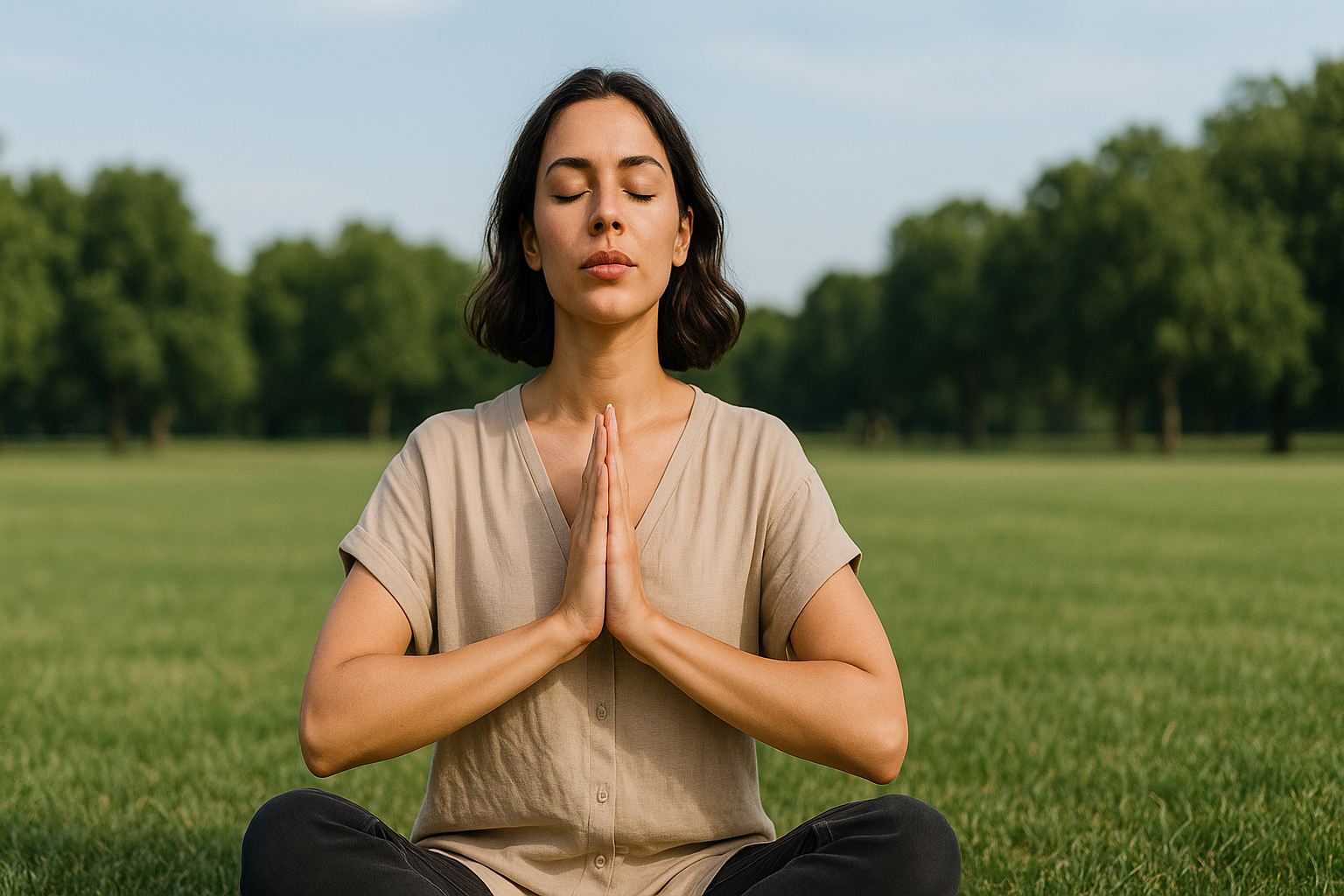 •Sitting cross-legged on a cushion or yoga mat.