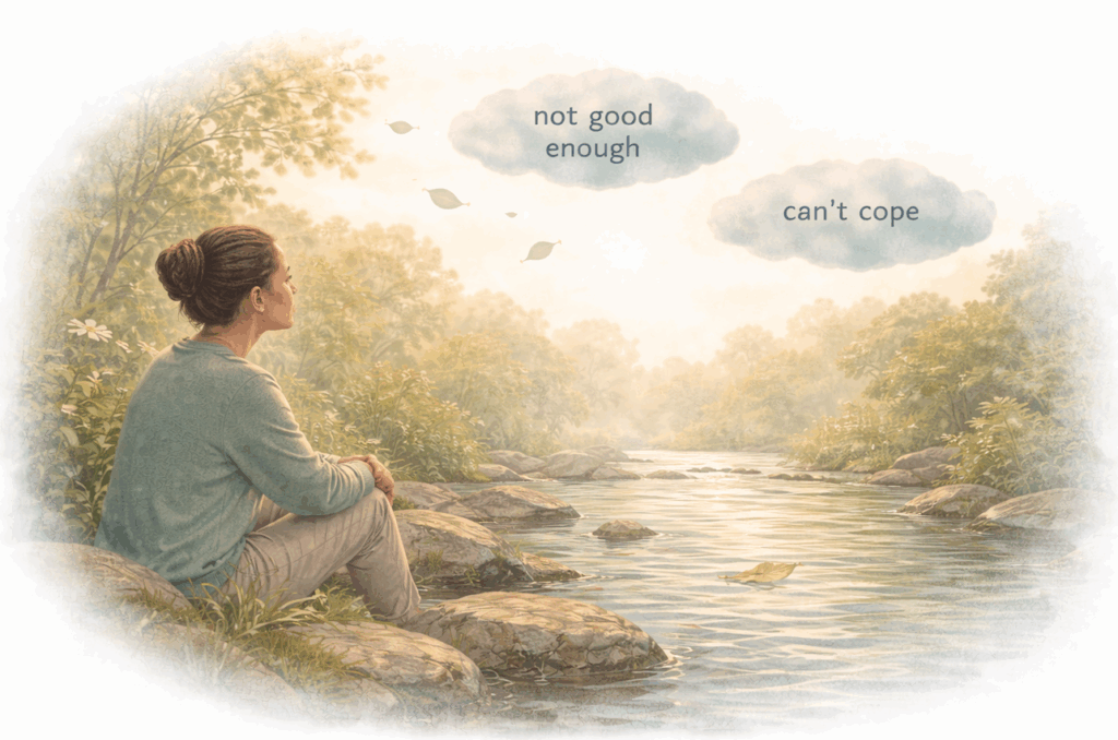 In simple terms: Cognitive defusion helps you step back from your thoughts instead of being carried by them.