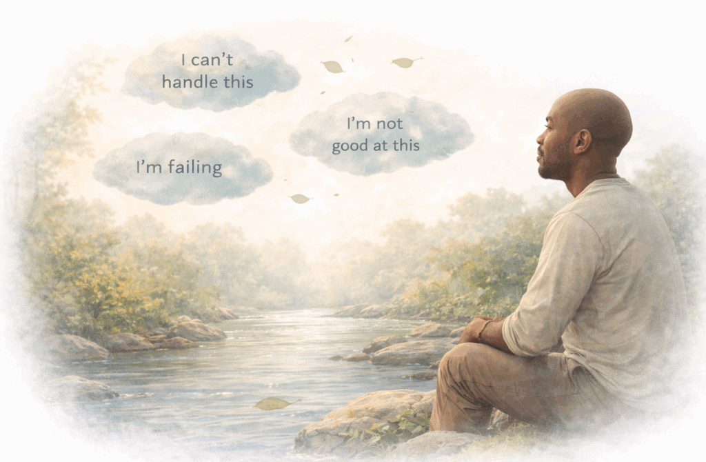 Instead of getting pulled into a thought or believing it automatically, you learn to notice the thought as just a thought,  not a fact, command, or prediction.